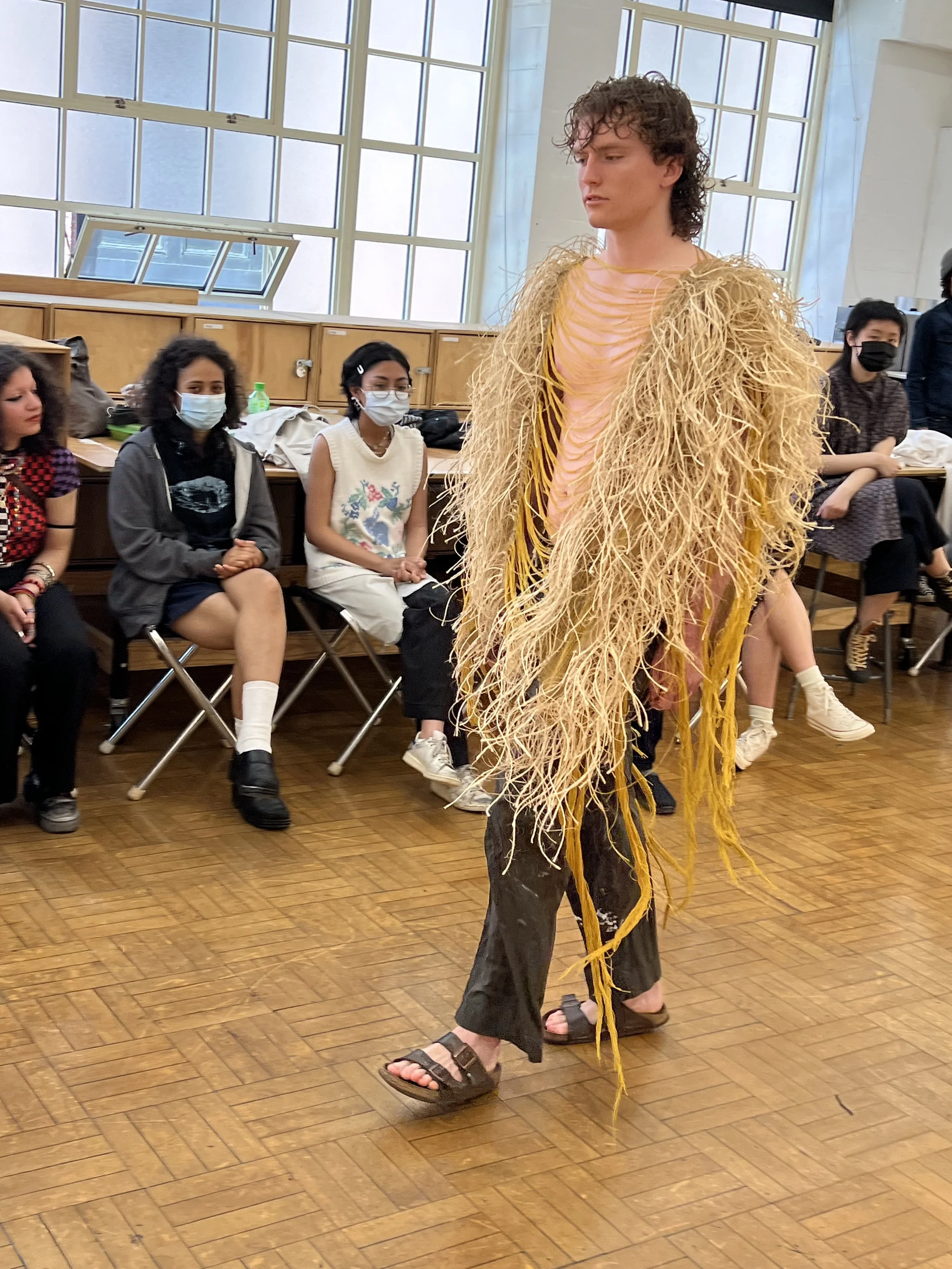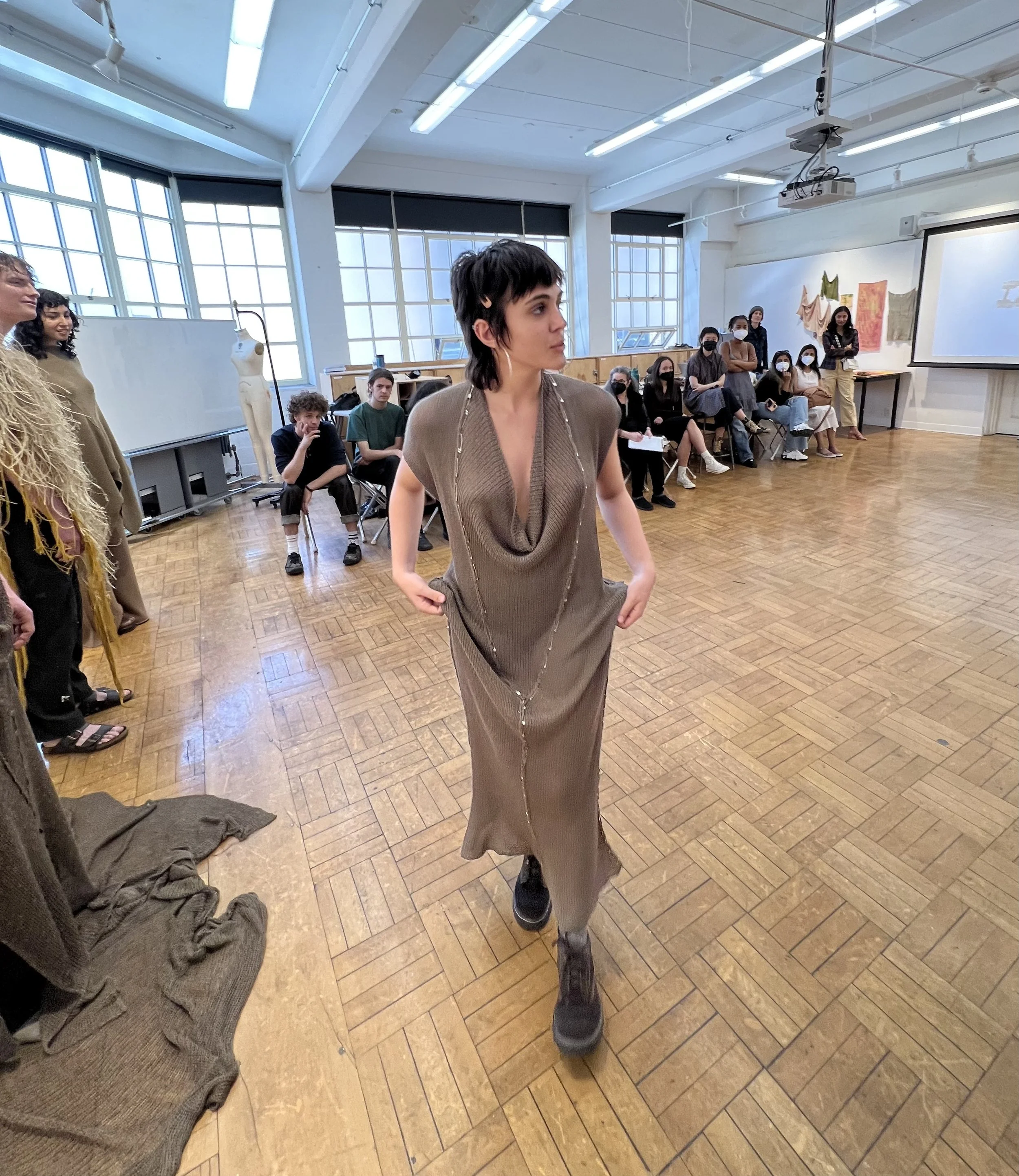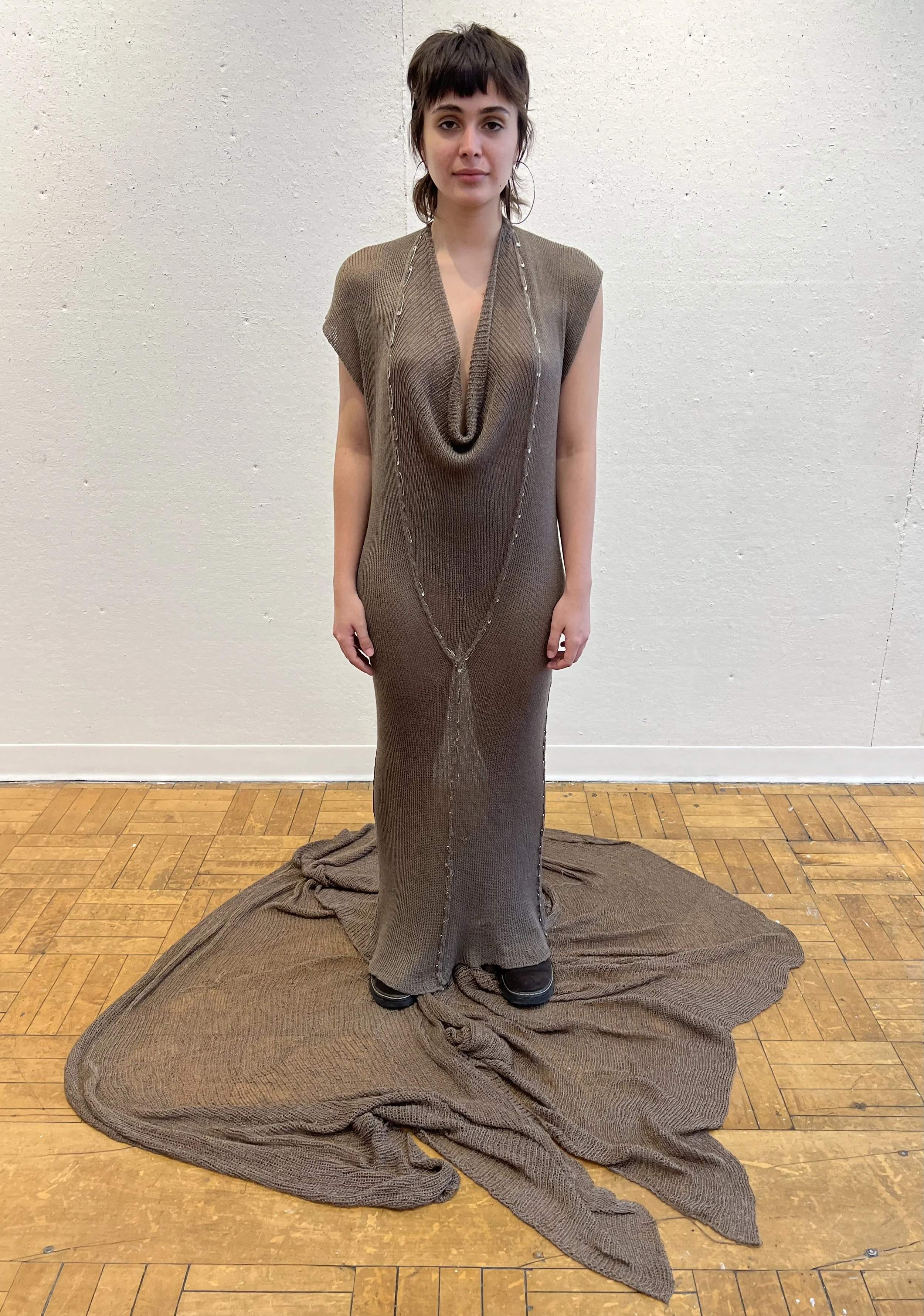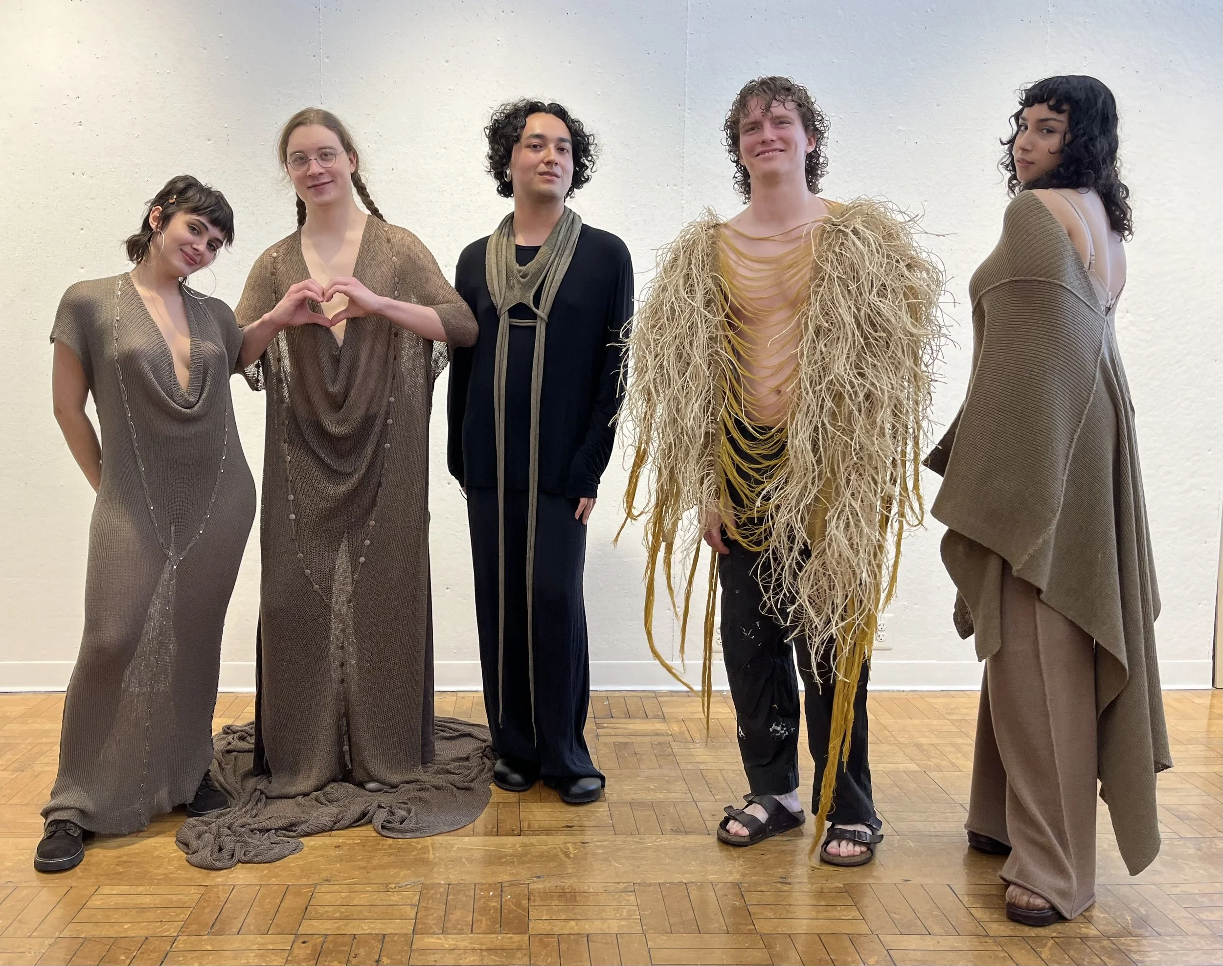 A preliminary body of work experimenting with simple, fully-fashioned constructions in machine knit rayons and wools, as well as woven jute tumbleweed assemblage.