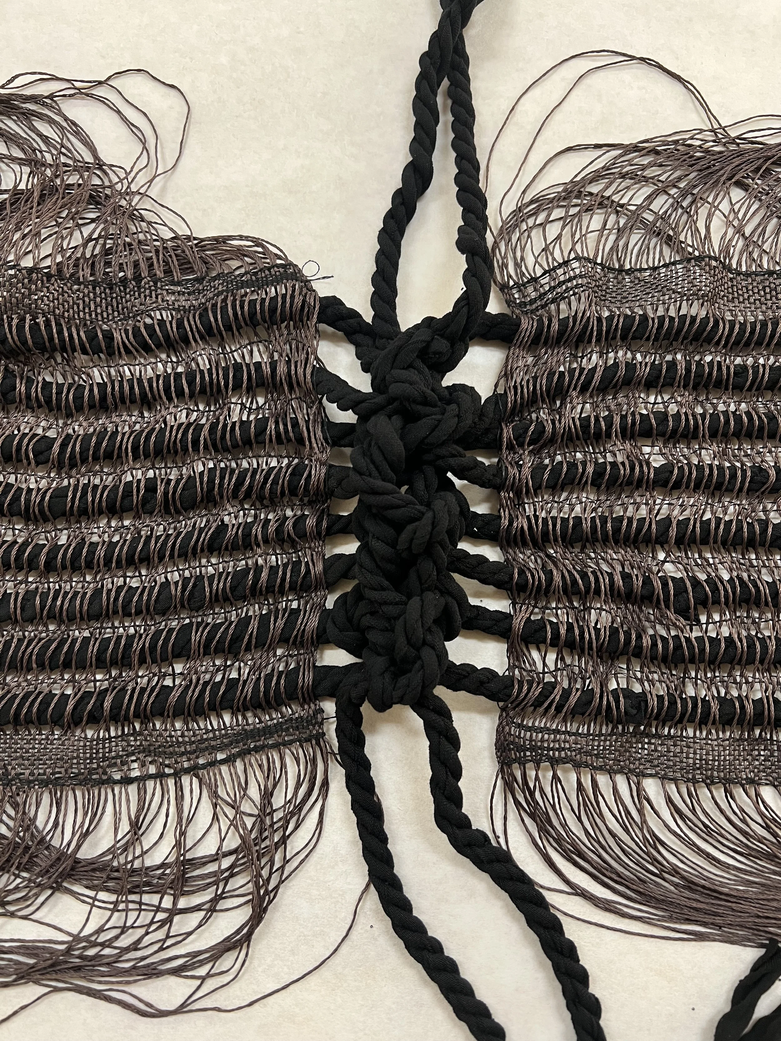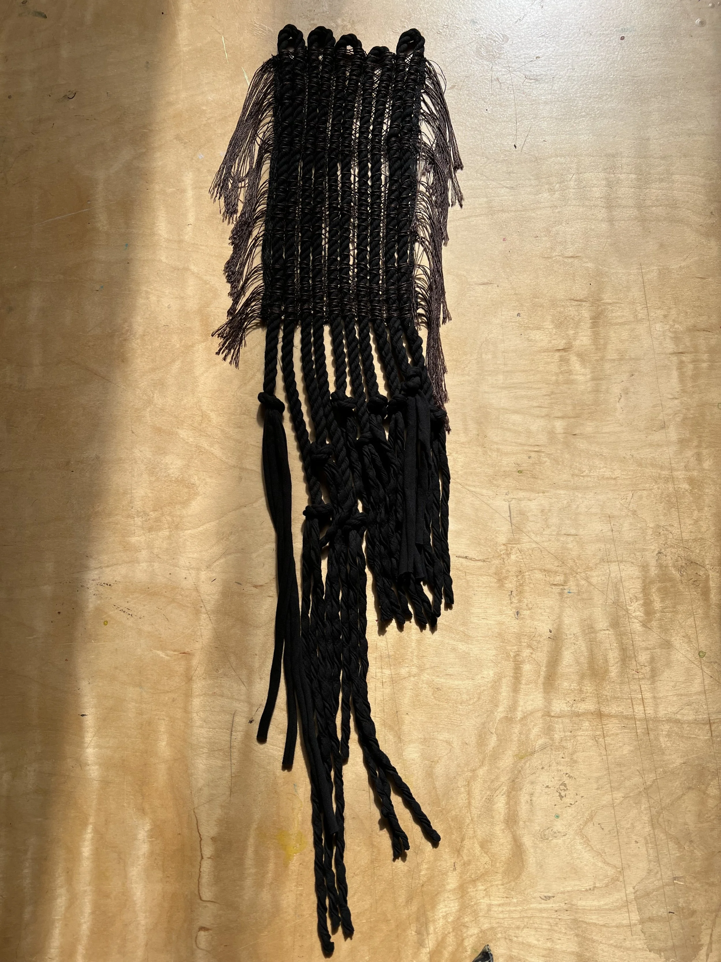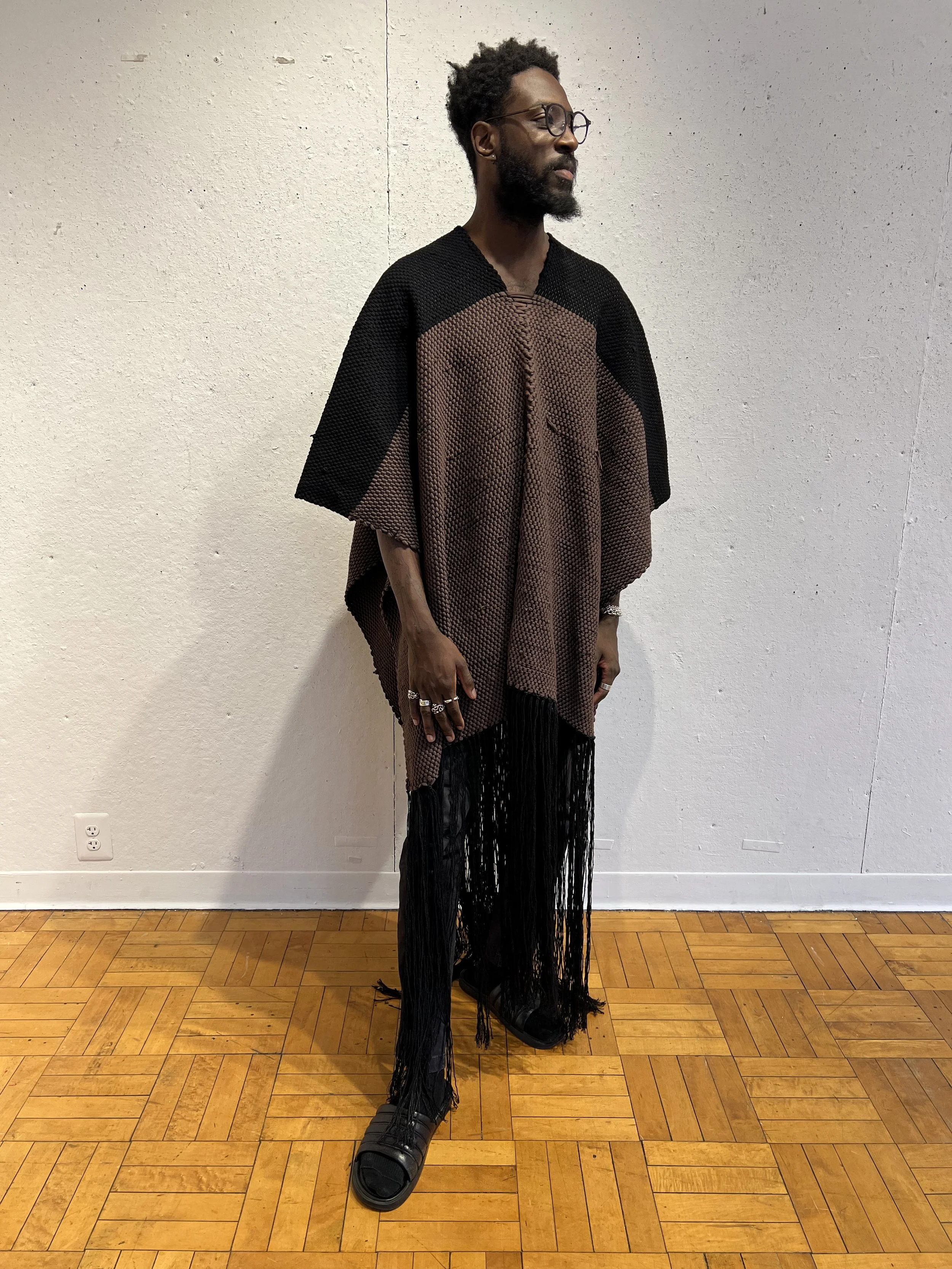 Rope making, weaving, and manipulation of disseminated materials converge to abstract a narrative about perseverance, ambition, and fate. Through the most essential shapes and the elimination of the cut, what emerges is a concept of dress that is as minimalist as the landscape that shaped it.